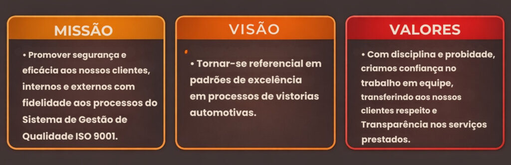 A vistoria leva em média de 20 a 40 minutos, dependendo do tipo de serviço e das condições do veículo.